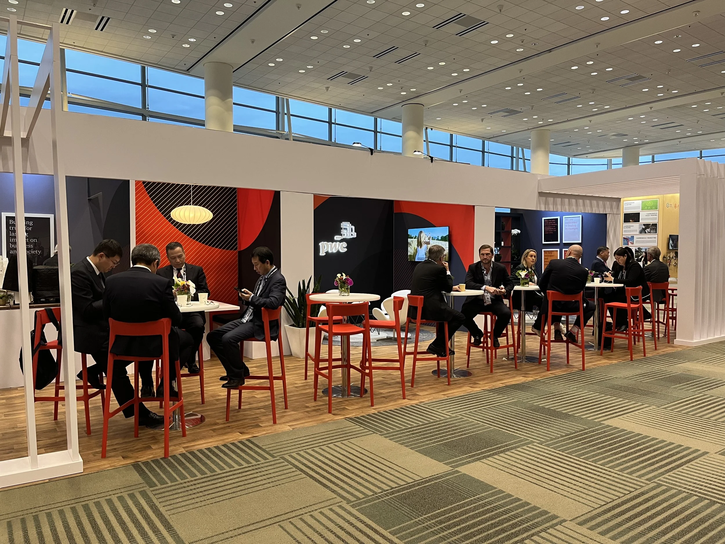 The annual APEC event is one of the world’s most important political meetings with heads of state from across the Pacific Rim coming together for speeches, bilateral talks and business meetings. This centrally located sponsorship booth for the 2023 event in San Francisco (the third APEC event I’ve worked on) was immensely popular for both the all day espresso service and its location right outside the plenary session.